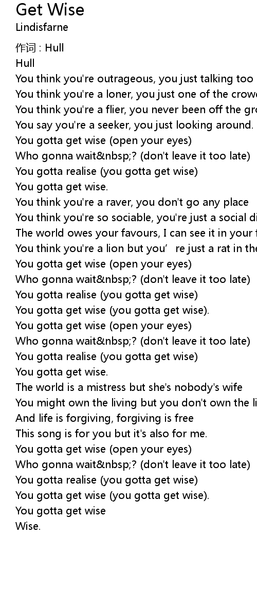 | You gotta get wise (you gotta get wise). | |