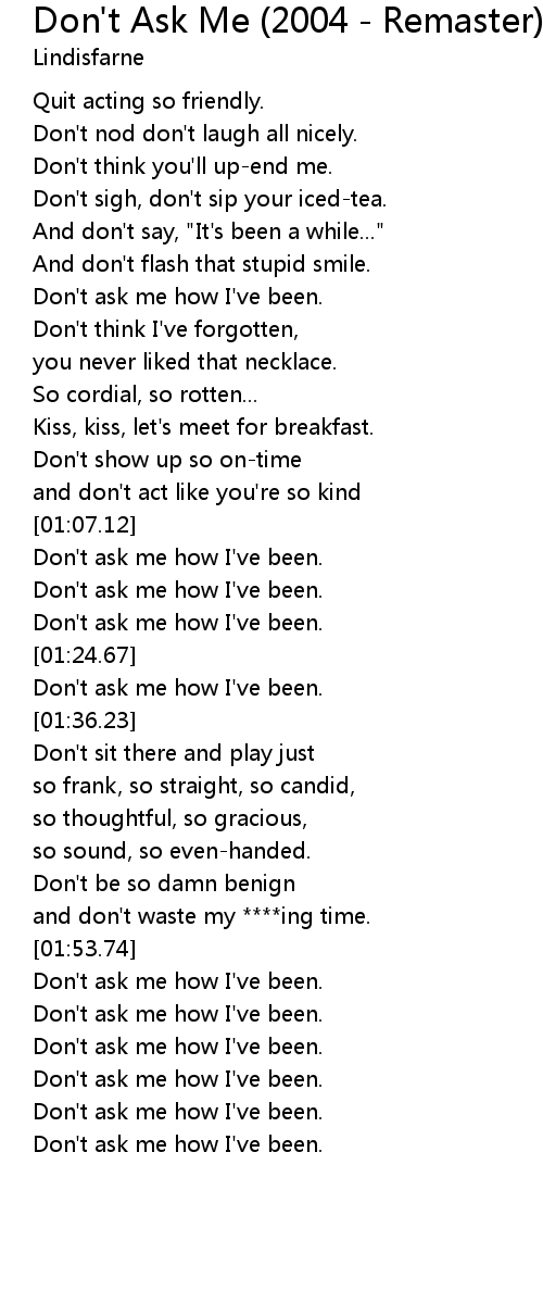 Don't ask me how I've been. |