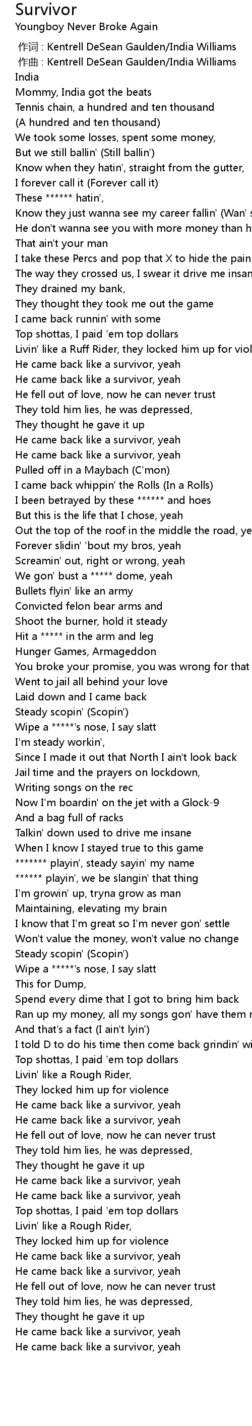 | [01:56.16] | Wipe a *****'s nose, I say slatt |