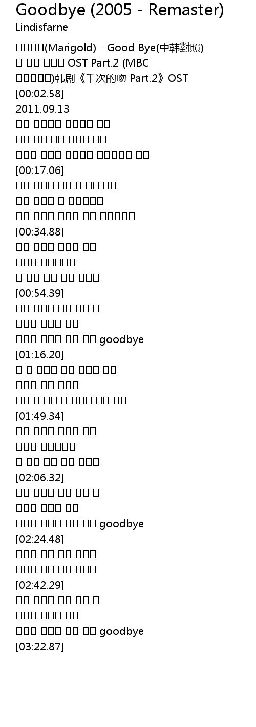| [00:00.00] | 매리골드(Marigold) - Good Bye(中韩對照) |