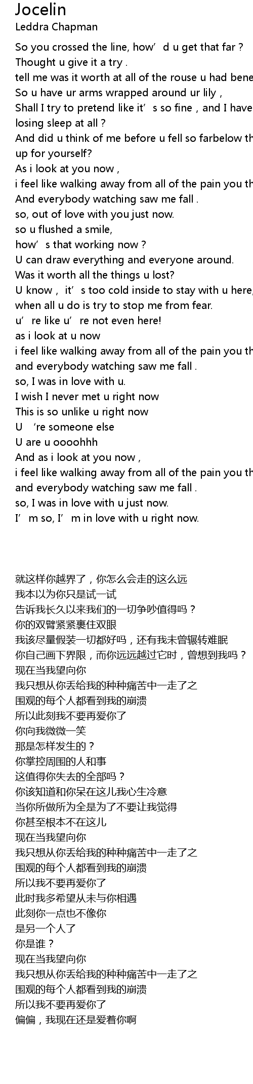 | [00:28.400] | And did u think of me before u fell so farbelow the line that u drew up for yourself? |