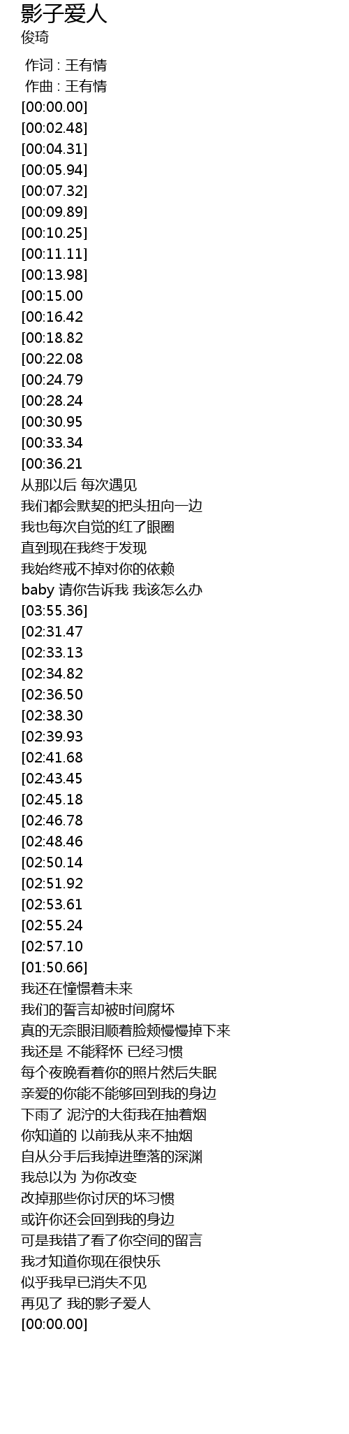 | [00:00.000] | zuò qǔ : wáng yǒu qíng |
