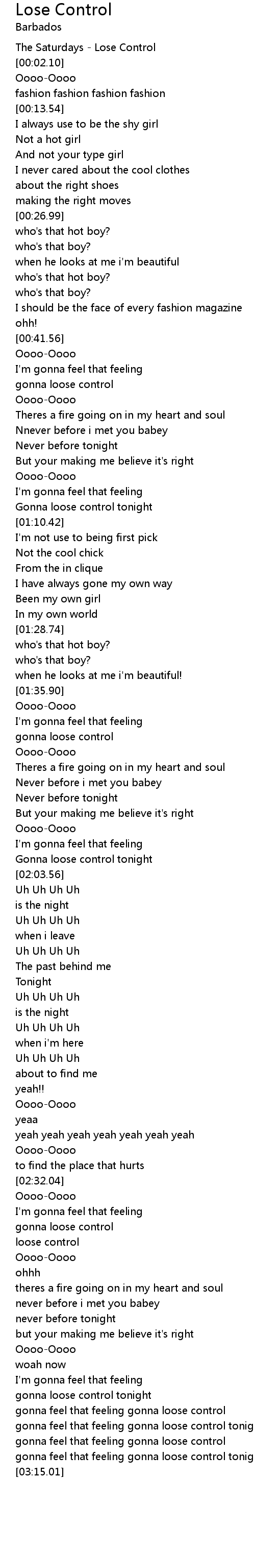 | [00:01.12] | The Saturdays - Lose Control |