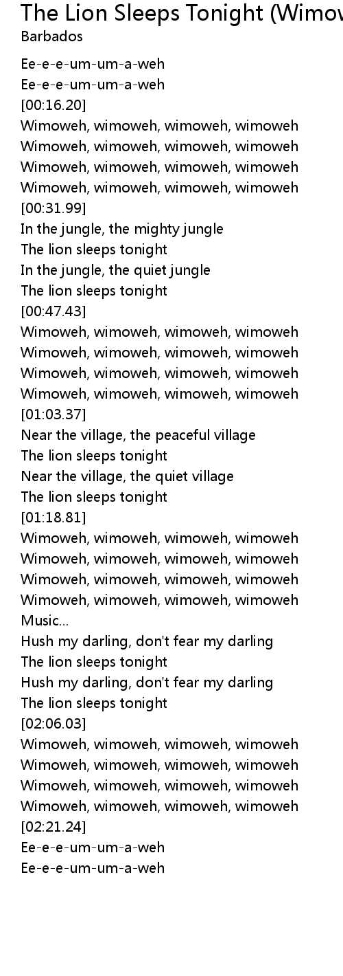 | [00:55.71] | Wimoweh, wimoweh, wimoweh, wimoweh |