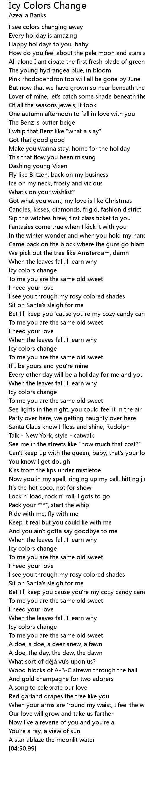 | [01:38.27] | Candles, kisses, diamonds, frigid, fashion district |