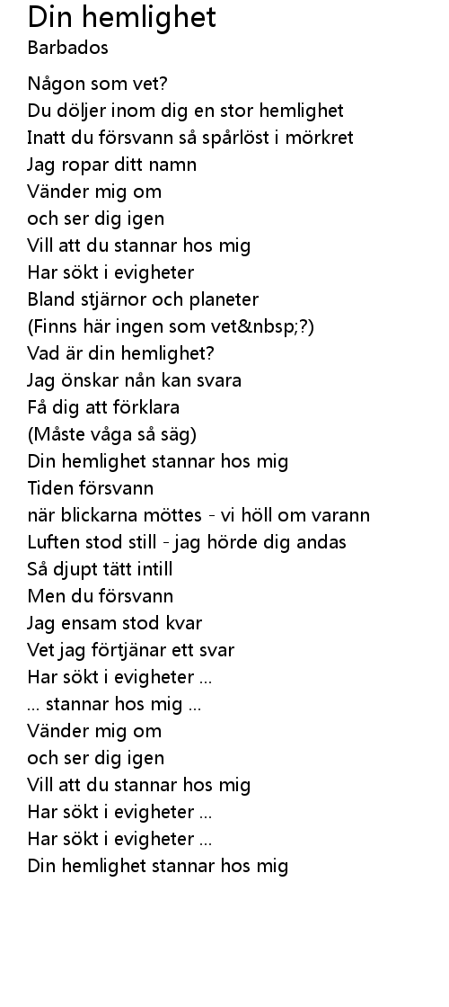 | Song | Din hemlighet |