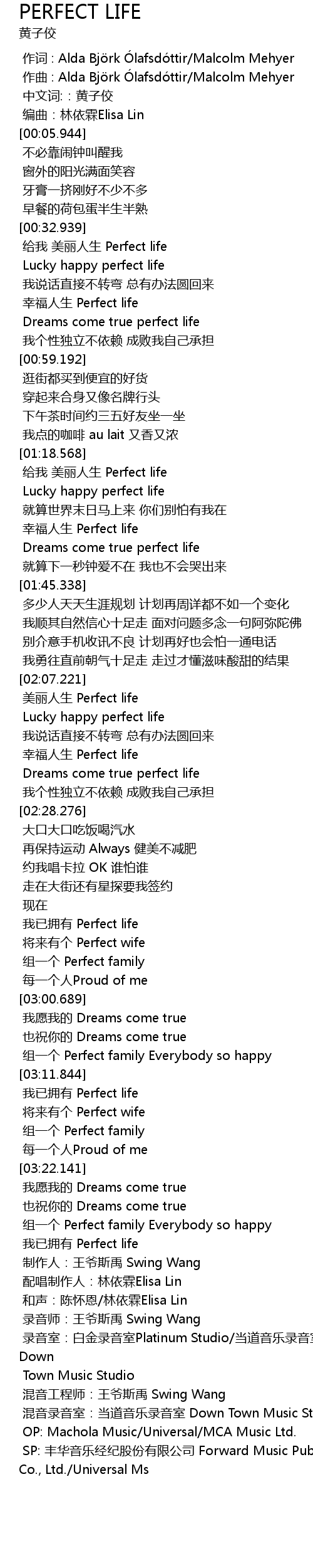 | [01:34.756] | 幸福人生 Perfect life |