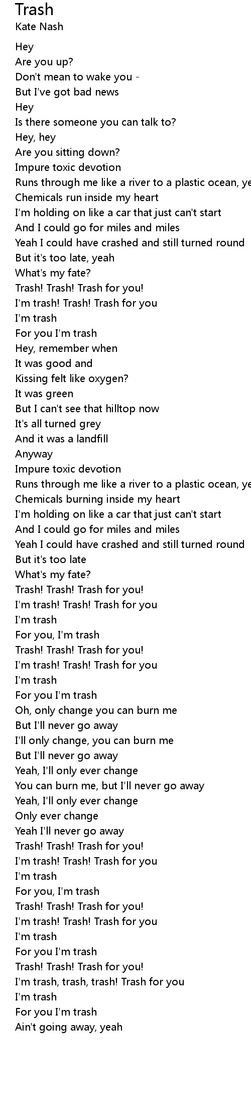 | [02:30.50] | Trash! Trash! Trash for you! |