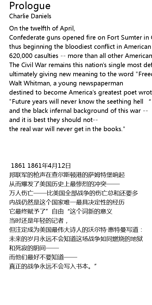 | [00:35.80] | The Civil War remains this nation' s single most defining experience |
