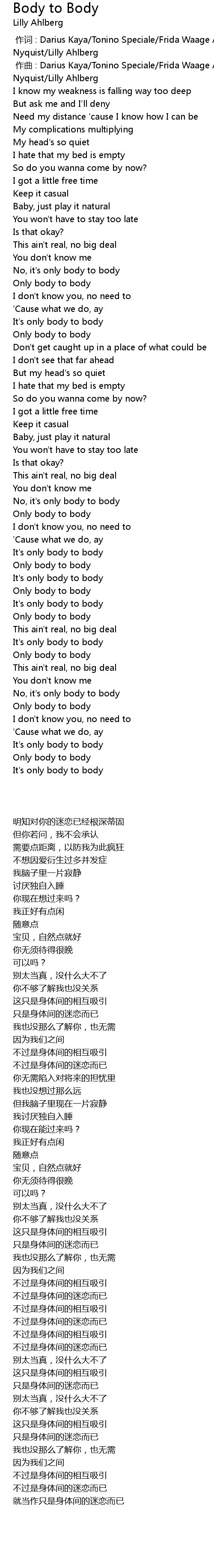 | [00:59.91] | Only body to body |