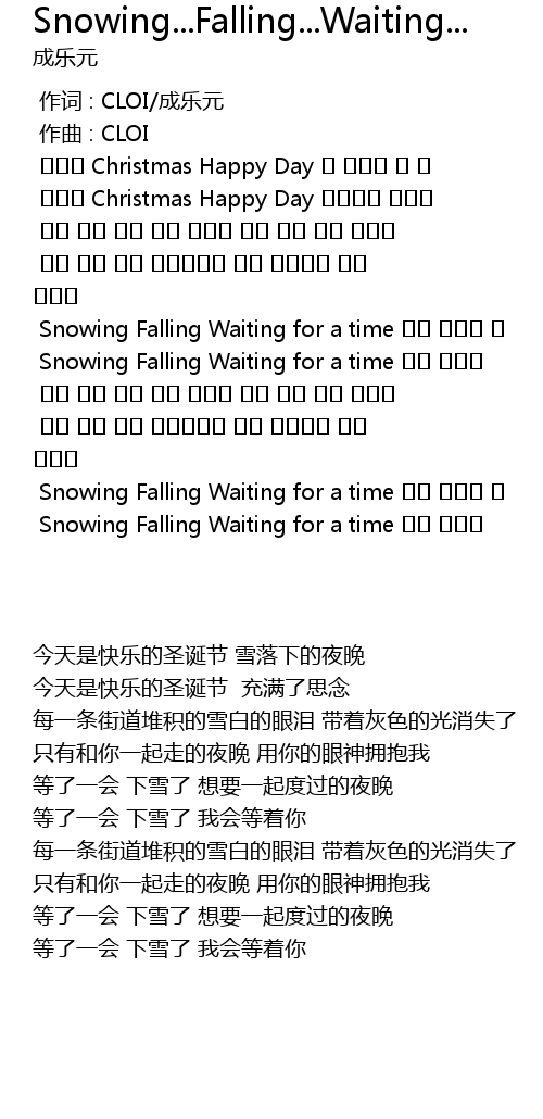 | [03:00.754] | Snowing Falling Waiting for a time 너를 기다려 |