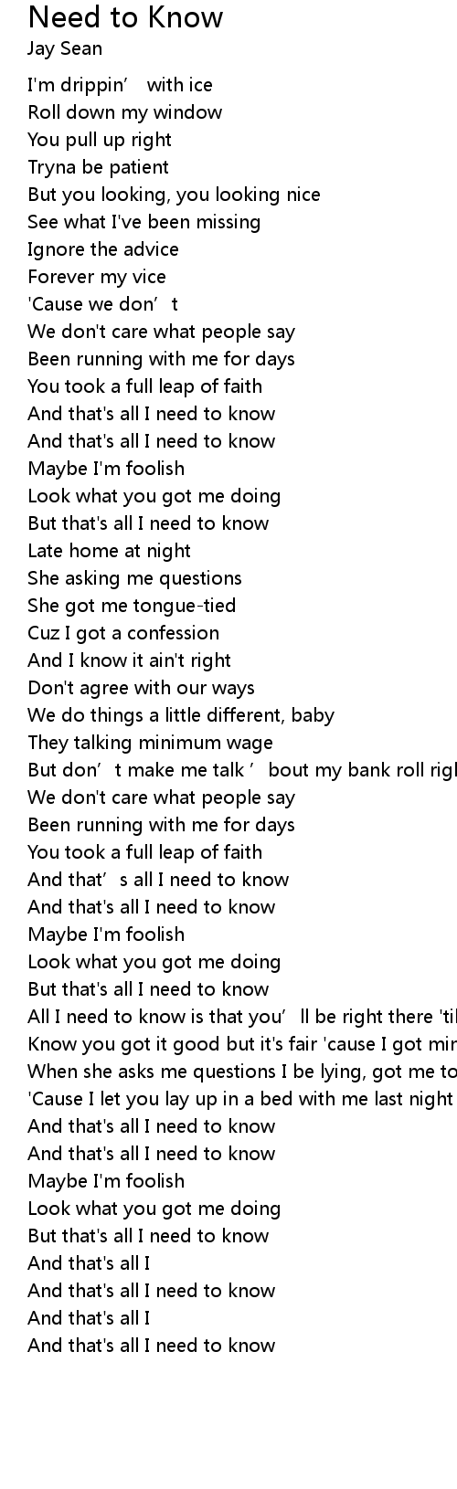 | Song | Need to Know |