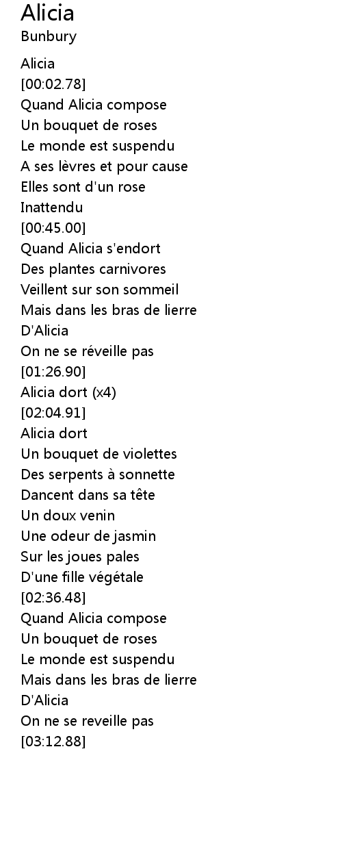 | [00:59.12] | Quand Alicia s'endort |