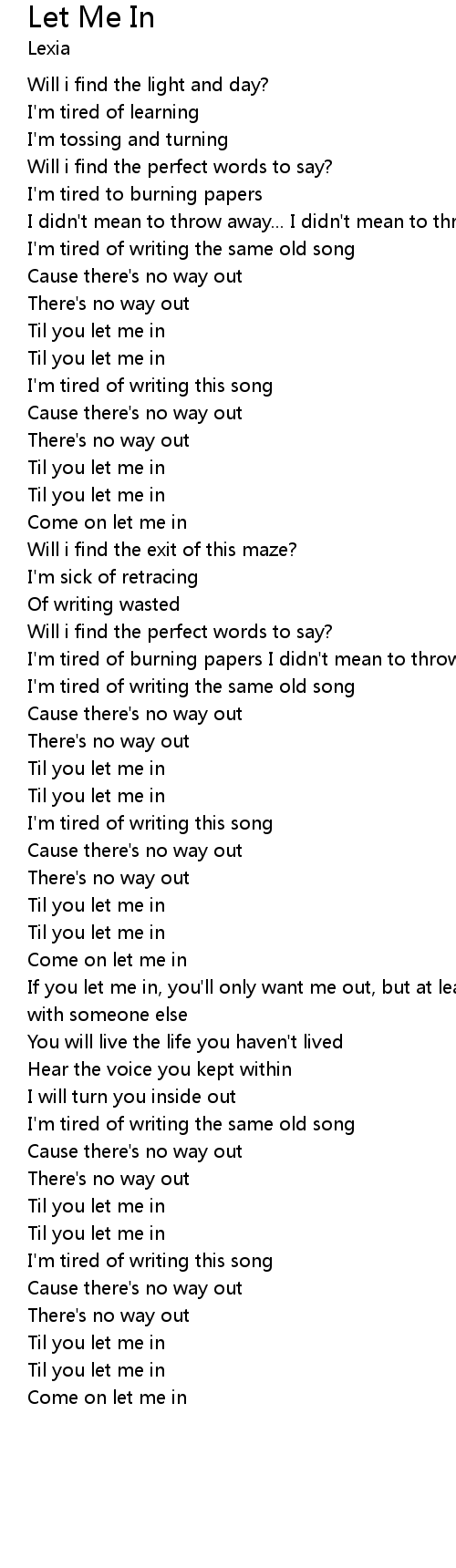 If you let me in, you'll only want me out, but at least you'll share the pain with someone else |