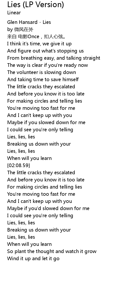 | [00:00.18] | Glen Hansard Lies |