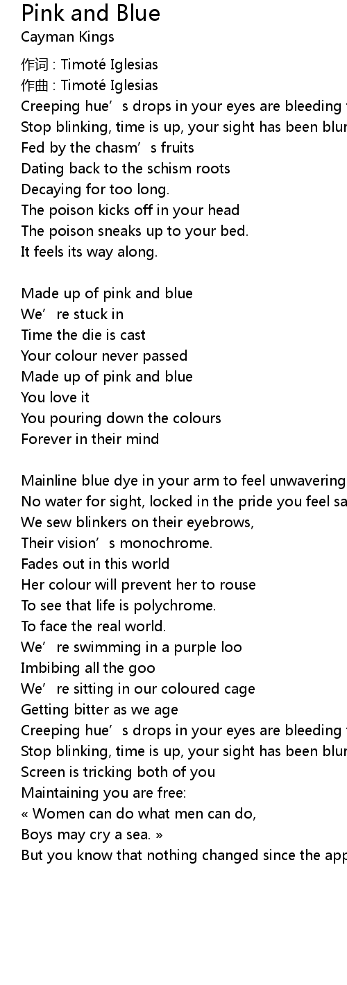 | Creeping hue' s drops in your eyes are bleeding through your words. | |