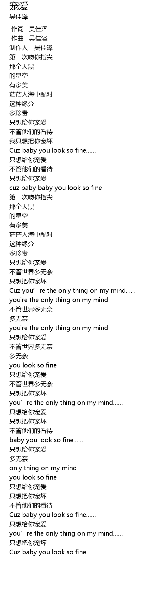 | [02:39.908] | zhǐ xiǎng gěi nǐ chǒng ài |