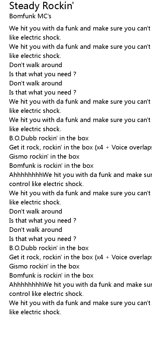 AhhhhhhhhWe hit you with da funk and make sure you can't stop,the rythm takes control like electric shock.