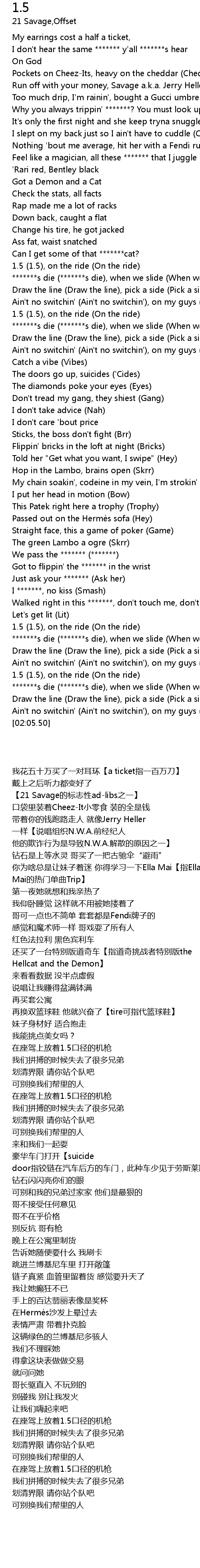 | [01:53.65] | 1.5 (1.5), on the ride (On the ride) |