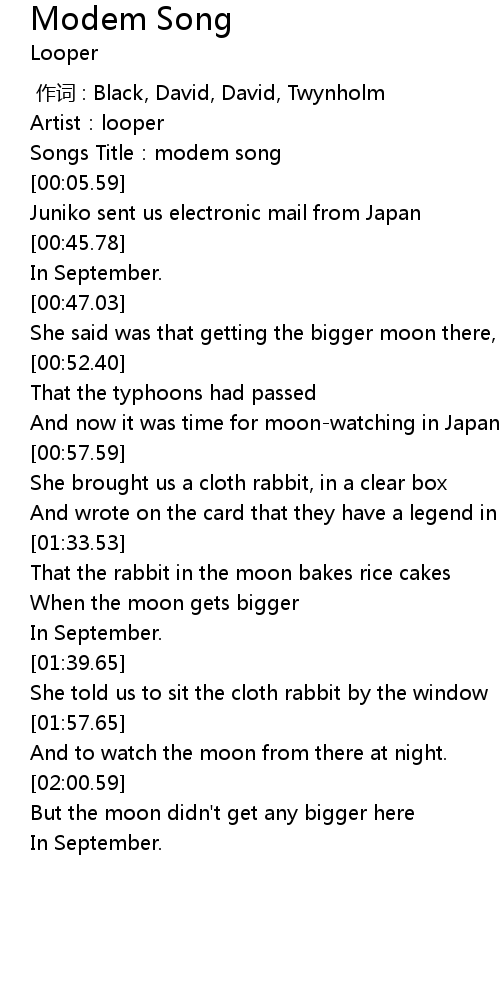 | [00:02.78] | Songs Title: modem song |