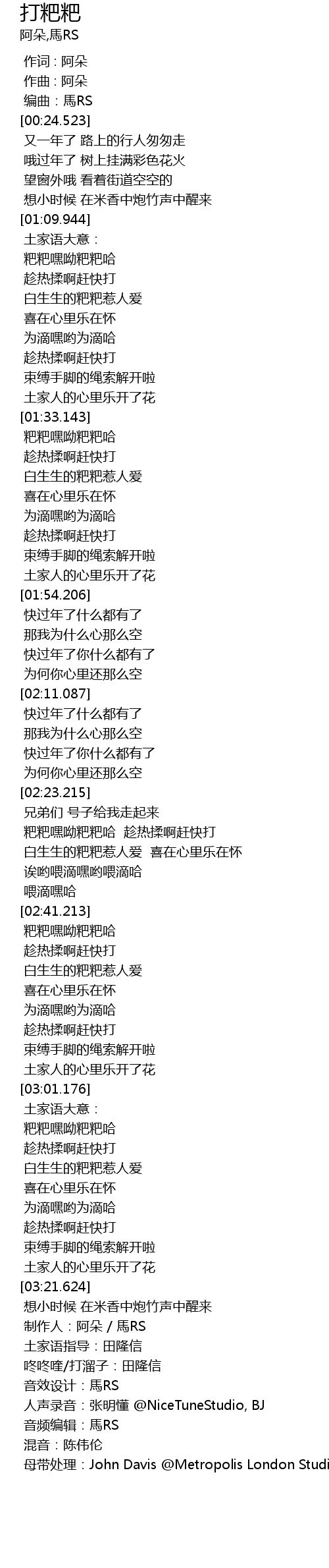 | [03:22.594] | 制作人:阿朵 / 馬RS |