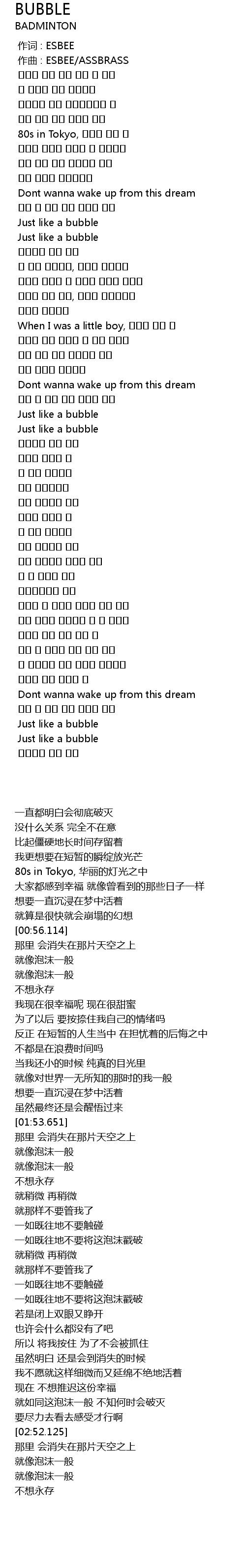 | [03:00.075] | Just like a bubble |