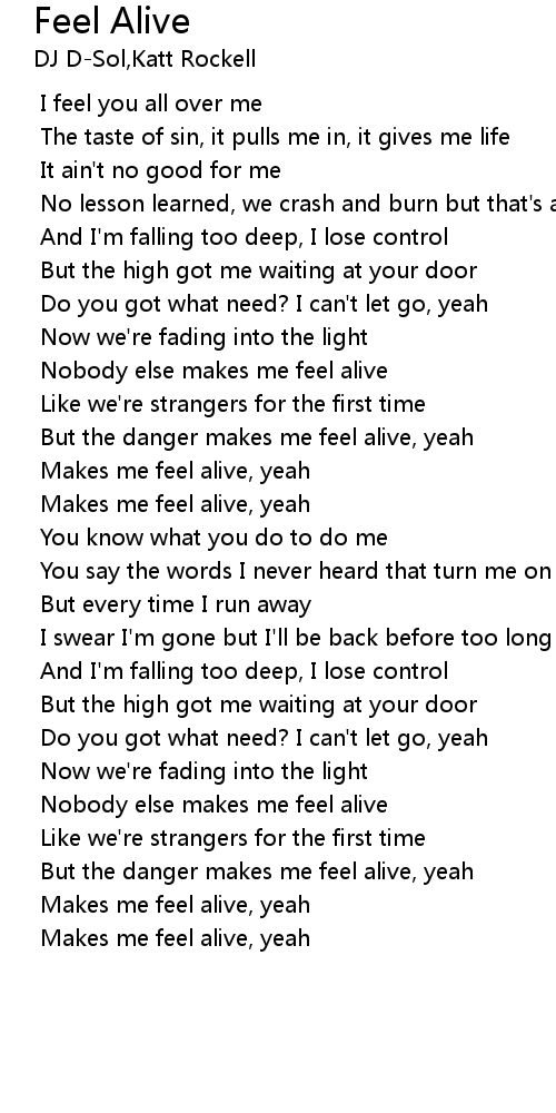 But the danger makes me feel alive, yeah |