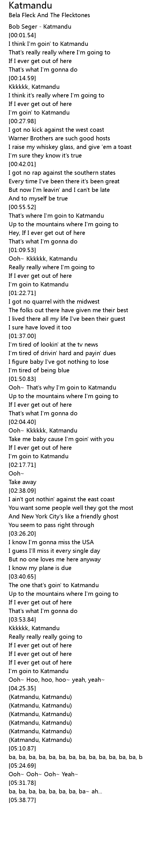 Ooh~ That's why I'm goin to Katmandu |