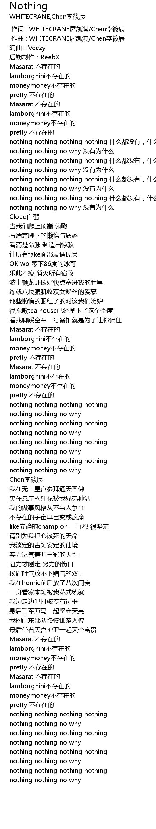 | [00:36.880] | nothing nothing no why méi yǒu wéi shén me |