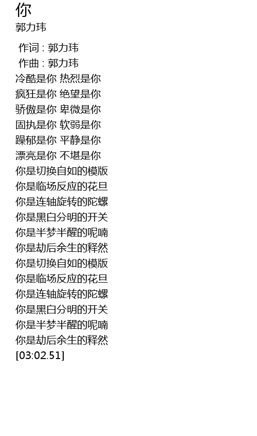 | [00:26.04] | 冷酷是你 热烈是你 |