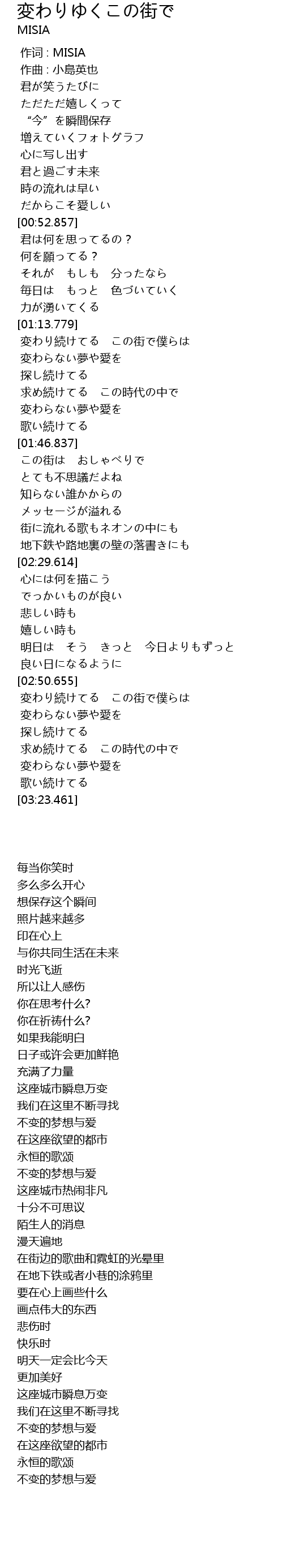| [02:51.343] | 変わり続けてる この街で僕らは |