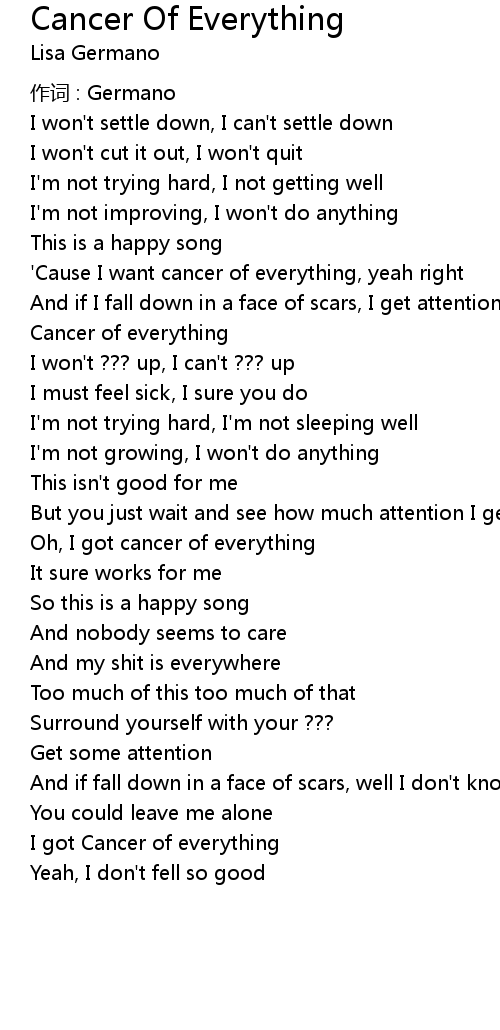 | 'Cause I want cancer of everything, yeah right | |