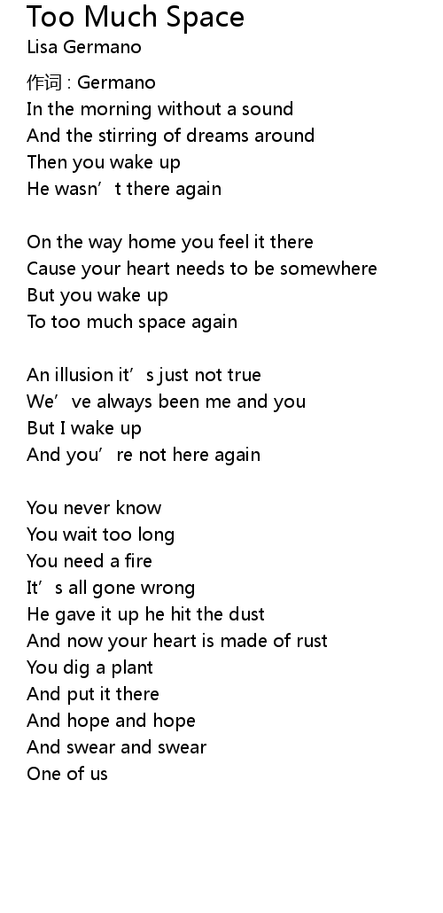 | Song | Too Much Space |
