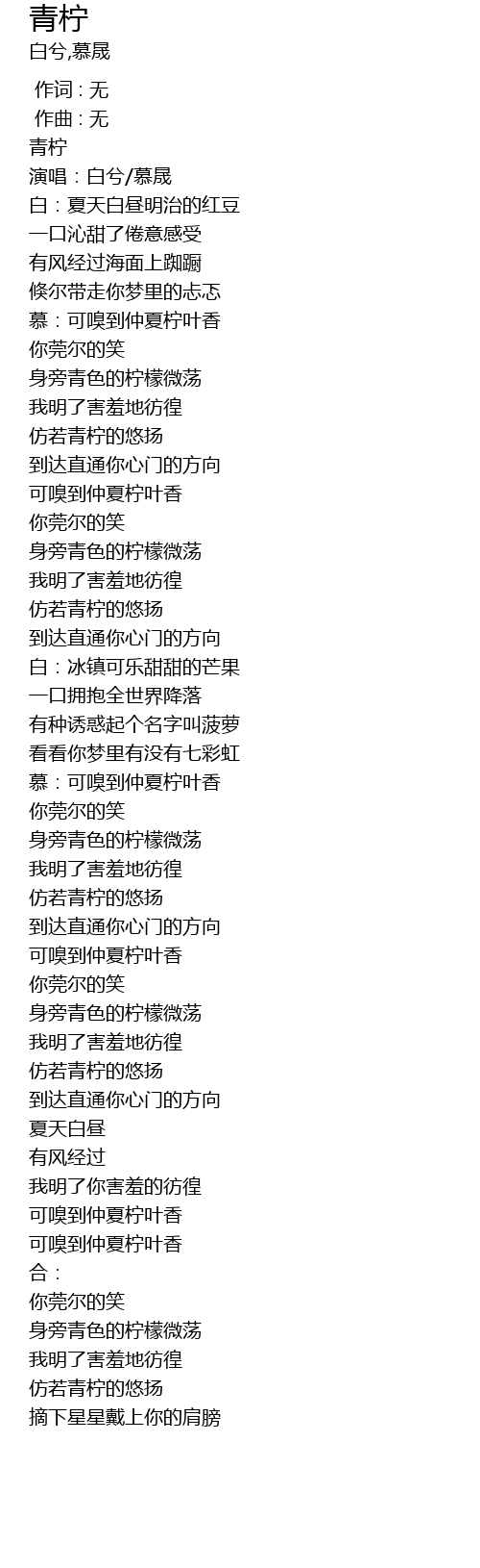 | [00:45.677] | 可嗅到仲夏柠叶香 |