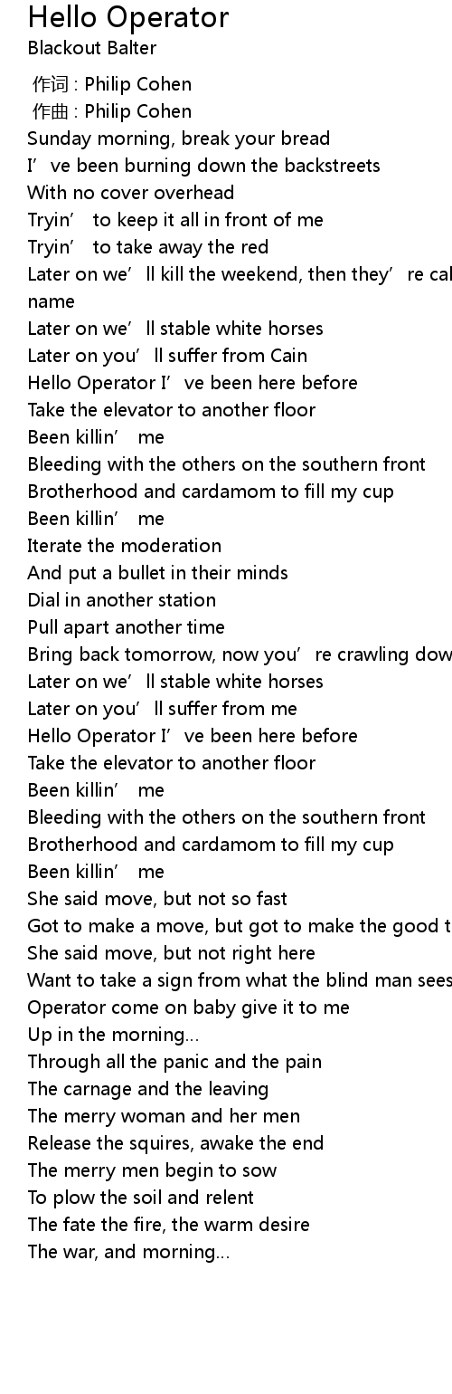 | [01:40.921] | Bring back tomorrow, now you' re crawling down the street |