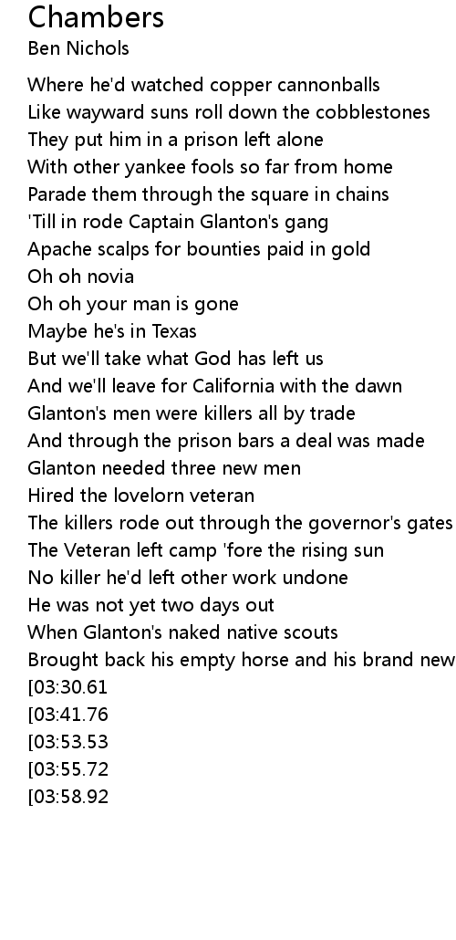 [02:02.25] 'Till in rode Captain Glanton's gang