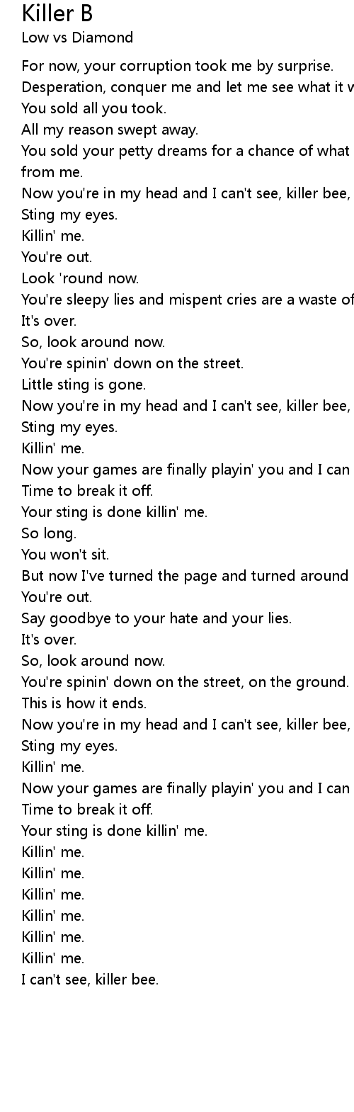 Now you're in my head and I can't see, killer bee, 'cause it might demise you. |