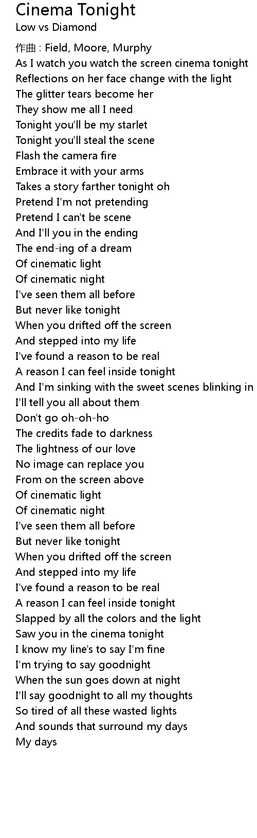 | As I watch you watch the screen cinema tonight | |