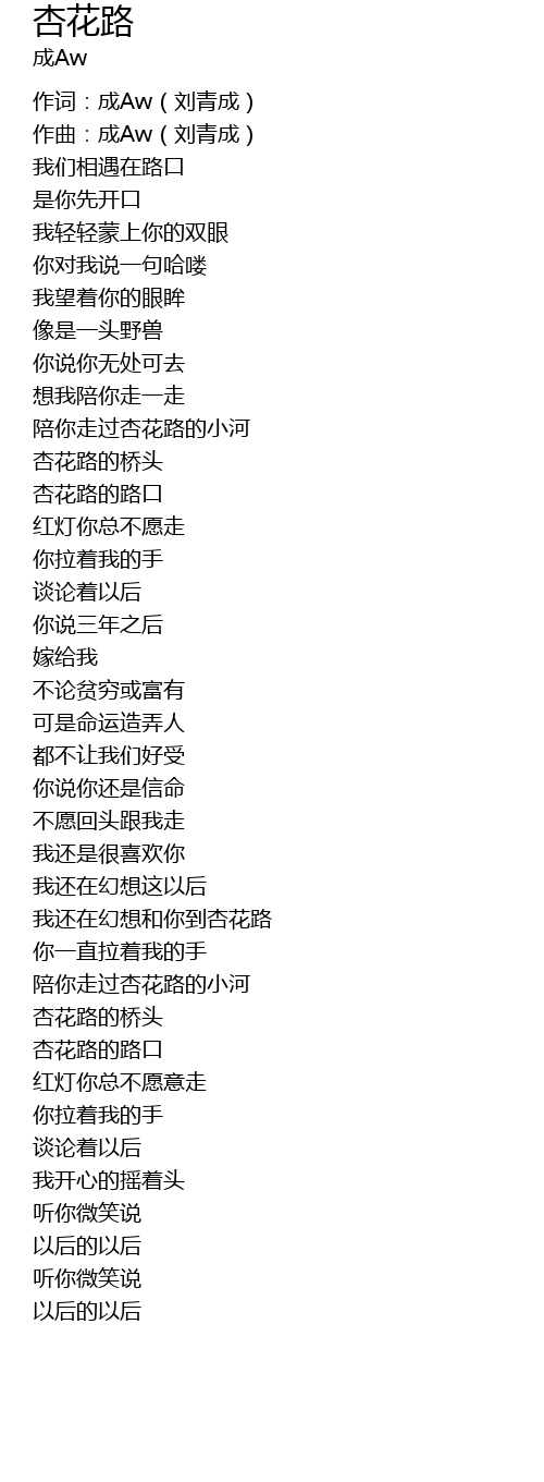 | [02:15.688] | 陪你走过杏花路的小河 |