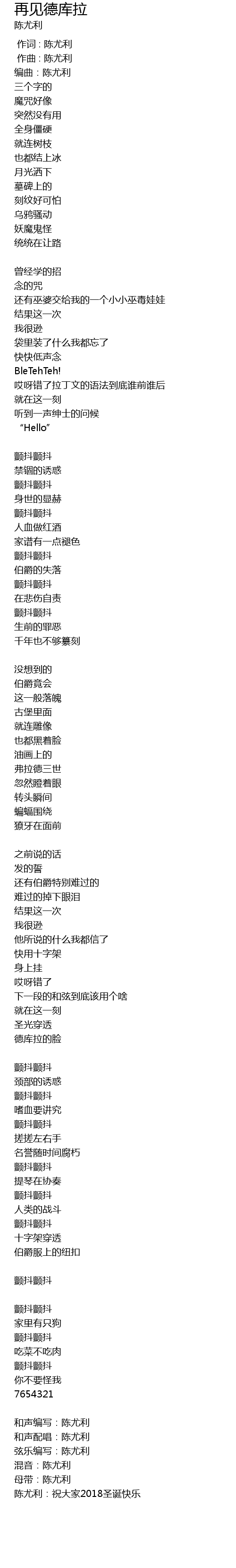| [00:03.100] | 编曲:陈尤利 |