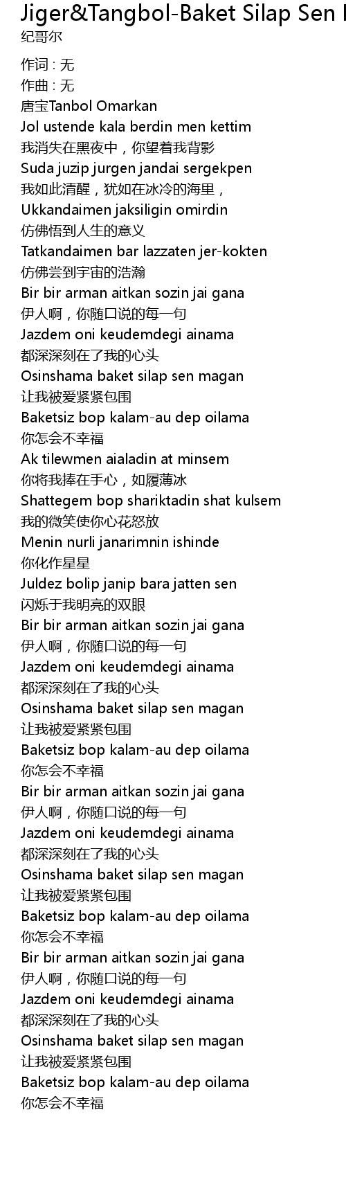 | Song | Jiger&Tangbol-Baket Silap Sen Magan你怎会不幸福 |