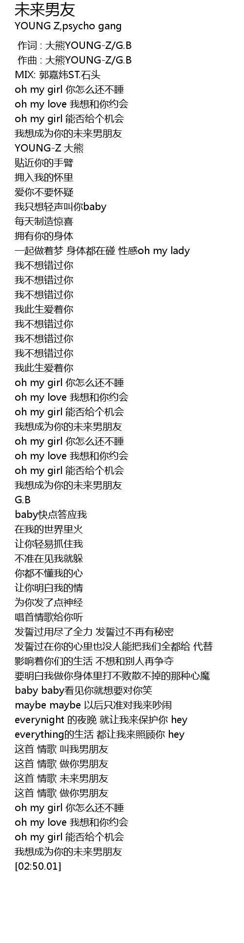 | [00:01.000] | zuo qu : da xiong YOUNGZ G. B |