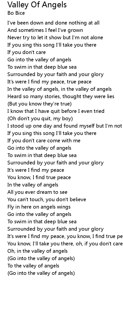 Oh, in the valley of angels |