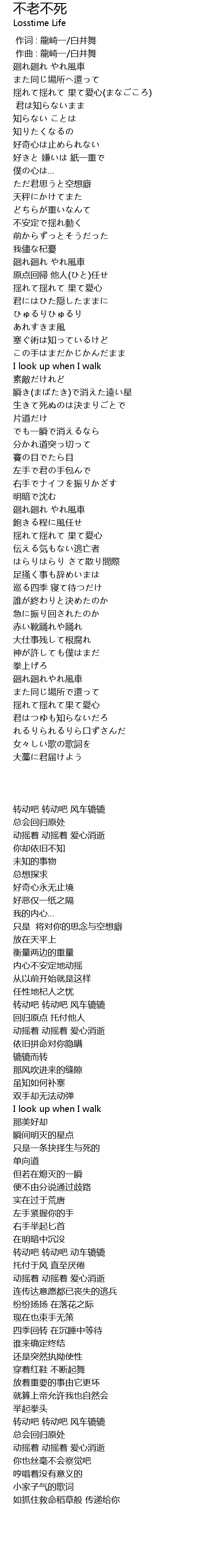 | Song | 不老不死 |