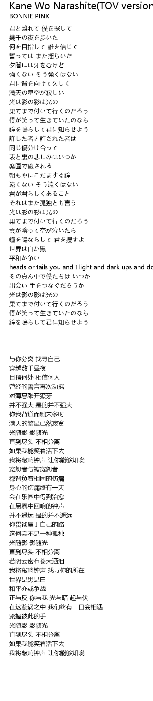 | [02:15.15] | 鐘を鳴ならして 君を捜すよ |