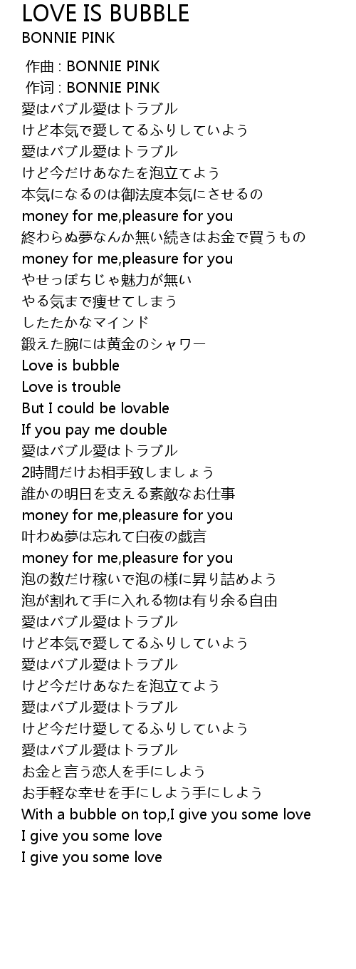 | [02:32.948] | 愛はバブル愛はトラブル |