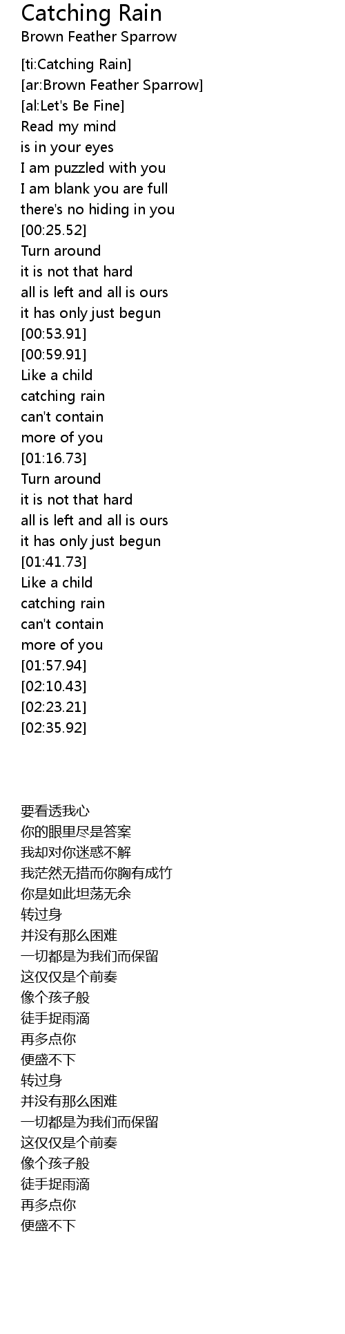 [ti:Catching Rain] |