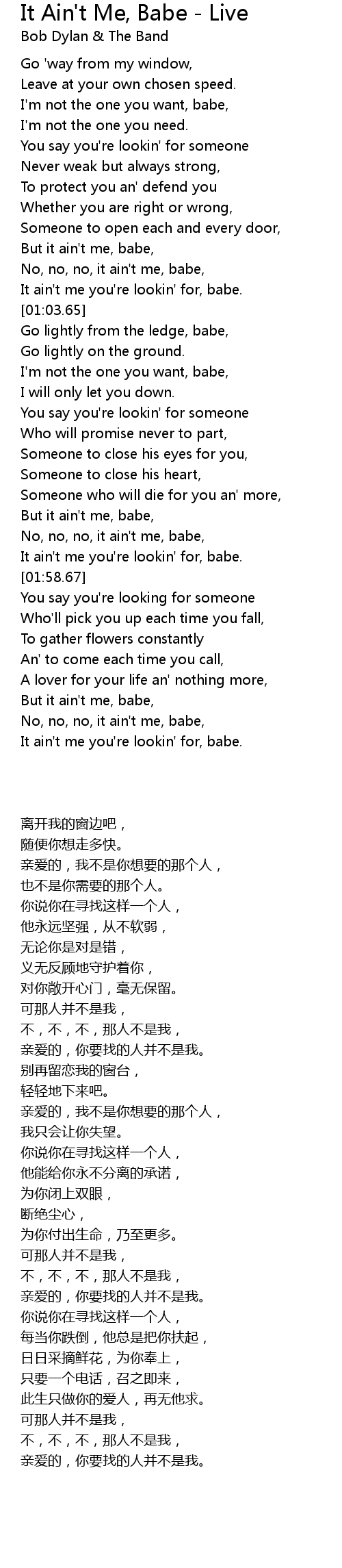 No, no, no, it ain't me, babe, |