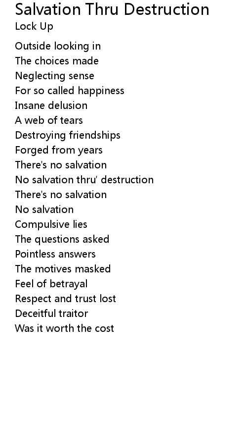 | Song | Salvation Thru Destruction |