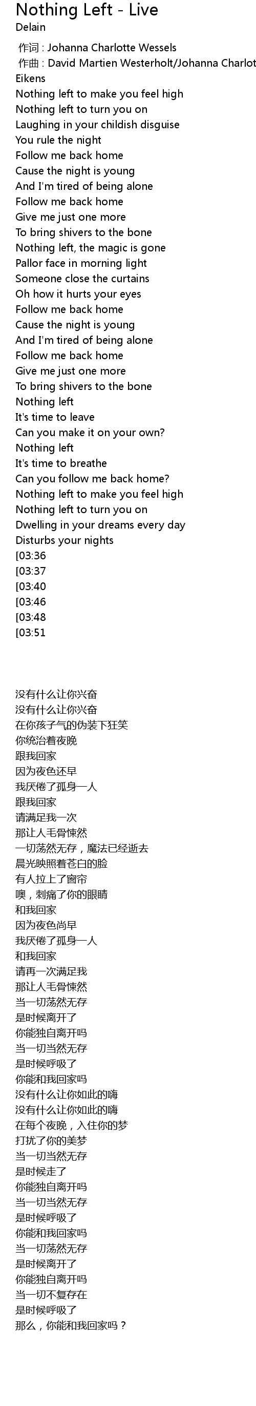 | [03:58][03:36] | Nothing left |